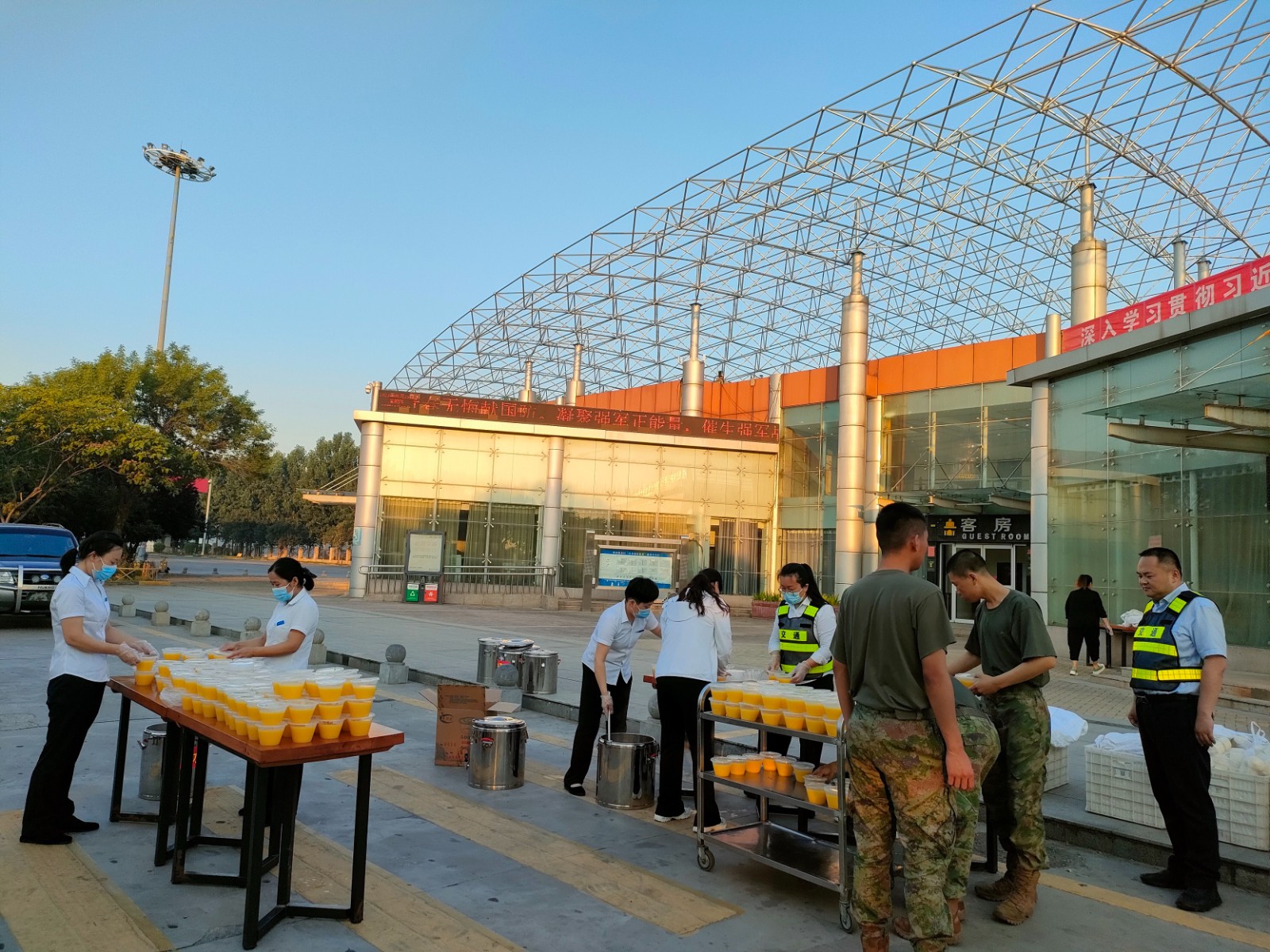 2023-06-15 作者:6月15日,濮陽服務區按照擁軍服務保障的相關需求,順利完成了中國人民解放軍某部60余輛車、600余名官兵休整接待任務,獲得了部隊和軍分區首長的充分肯定和表揚。一是組織工作人員下沉一線、沖鋒在前,全力投入到備餐工作中,確保部隊及時、順利就餐;二是聯合屬地市場監督管理局…